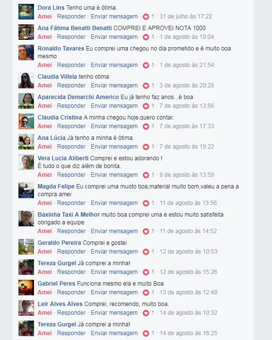 Veja os depoimentos de quem adquiriu o produto:
